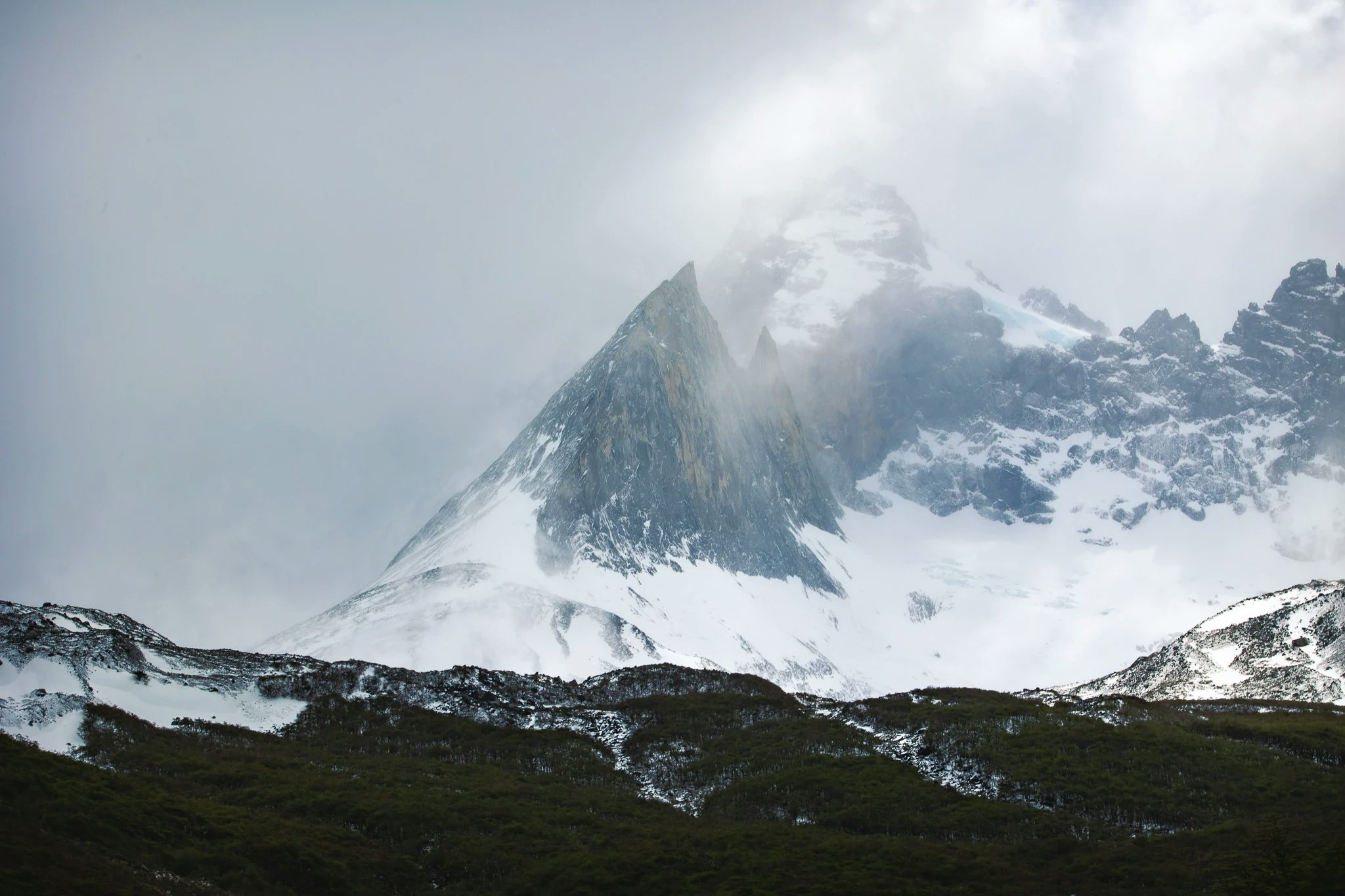After we recovered from our colds we decided that we also want to see the Argentinian part of Patagonia. Being just a 3h bus-ride away, it was a fairly easy thing to do. El Chalten and El Calafate both offer a great variety of hikes and scenery. A very impressive experience was Perito Moreno, a famous and huge glacier that ends in a glacier lake full of ice bergs. The astonishing blue colours of the glacier and the occasional rumbling of breaking icebergs stuck with us. We ended our time in Patagonia in the charming little mountain village El Chalten where we went on another famous hike to see Mount Fitz Roy (the silhouette of which is depicted in the outdoor brand logo Patagonia). Once again words don't do justice to the incredible scenery. On the top of the hike, we curiously spotted a fox that was scavenging left-overs from the hikers having their lunches.