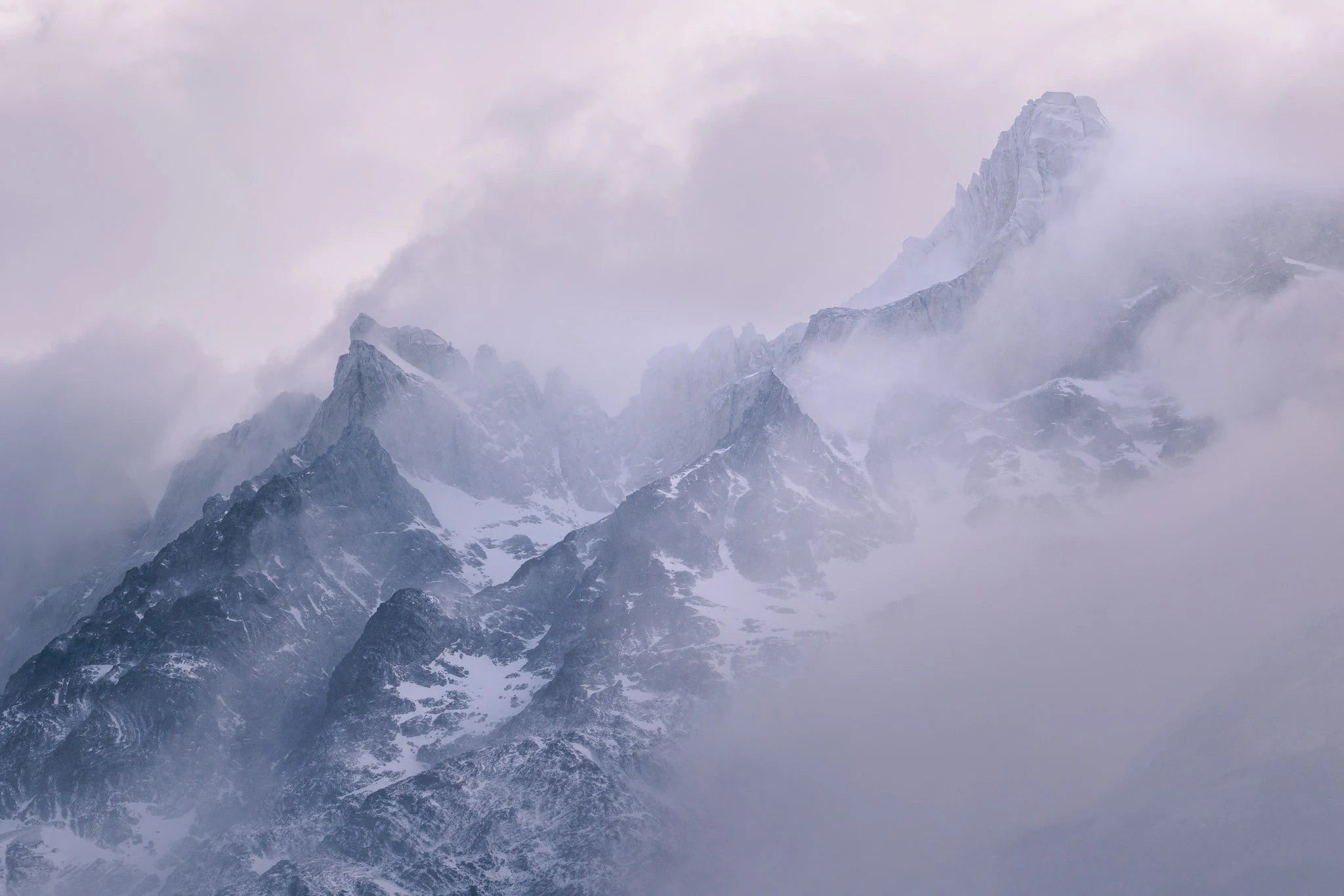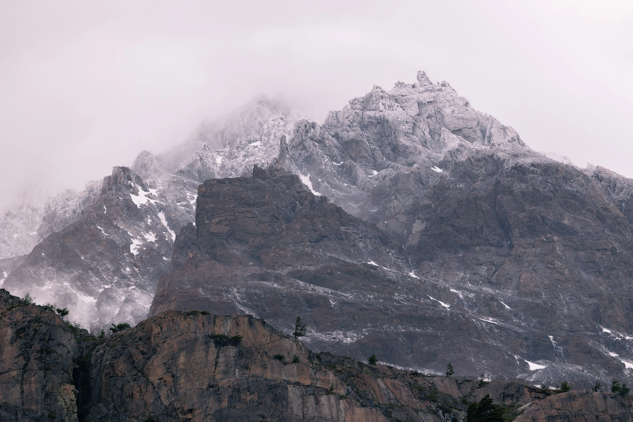 Our first highlight of the trek came on day 3: on our way to Frances campsite we decided to hike up Mirador Britanico despite the intense rains and winds. Luckily, there was a small shelter where we were able to drop off our heavy backpacks to pick them up after going up the 600m of altitude. Climbing over big rocks trying not to slip we approached French glacier on the opposite side of the valley first. When we arrived at the first lookout the visibility was horrendous where we were heading. On the evening before we met a couple of new faces, Julia and Miri, Heidi and Marek as well as Marcel, who came down again from the first viewpoint when we crossed them. They mentioned that they couldn't see anything, but we still decided to give it a shot and went on where they turned back. We still had a climb in front of us and we were already drenched, but after another ~40 minutes the clouds were suddenly swept away. One very friendly hiker that was on his way back was beaming - "Go on quickly now, the view is fantastic. You're very lucky that it's just clearing up!", he said. Excitedly, we hiked on and soon afterwards we were rewarded for our earlier decision. Arriving at an open stony area, we realised what majestic peaks were surrounding us. The very pointy and rugged mountain range presented itself in wonderful colours. The final part to get to the Britanico viewpoint lead up a steep cliff still covered in snow. When we finally arrived at the top we sucked in the rewarding accomplishment and fantastic scenery while chewing on a cereal bar to refuel.