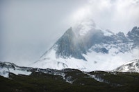 The start of our trek was at Paine Grande, where we arrived by catamaran. The first day's hike was a fairly short one, just 12km with a couple hundred meters of altitude, but with the heavy packs. The path wound through shrub and many dead trees along a small beautiful lake with a small island in it, before spotting Lago Grey, and more impressively the first ice bergs floating inside of it. Being a glacier lake, Lago Grey is fed by Grey Glacier that's part of the Southern Patagonian Ice Field. Spotting the glacier from the top of the mountain pass was mind-boggling. Even from afar you could tell that the covered area is massive. At the same time, the winds on the pass were incredible, we kept adjusting our steps and posture to compensate for the wind pushing against us and howling around our ears. After a quick snack we hiked on till we arrived at the hut and our first accommodation for the night. A very dramatic incident that happened only a week after we were there shows just how severe the weather in this area can get. Sadly, a group of 5 hikers got caught in a heavy snow storm just a few hours hike away from Grey hut and died. We didn't know at the time obviously, but it certainly shocked us when we read about it afterwards.