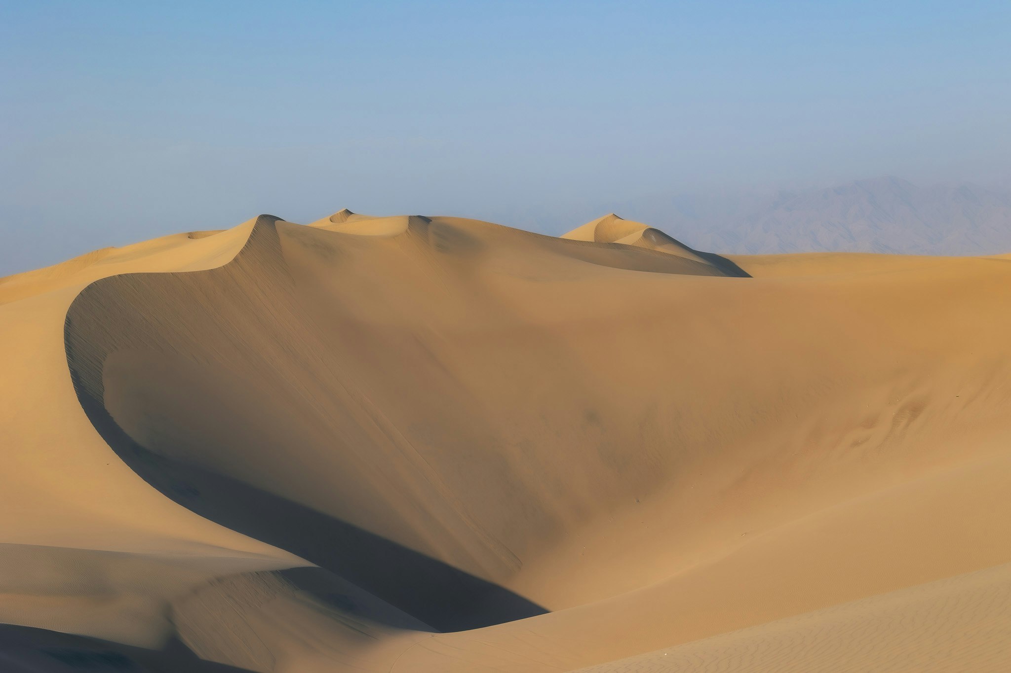 Despite the wild night some at the hostel had, the two of us still got some sleep and got up early for a little exercise walking up the sand dunes - harder than we thought it'd be by the looks of them! This activity's reward was an far-reaching view of a warm, sandy desert and the blue lagoon that Huacachina is built around, and the sheer pleasure of running down the dune again that felt like running on a cushion.