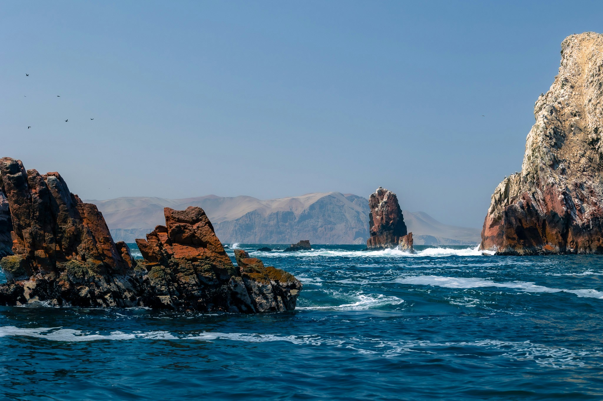 In Huacachina, we constantly had to fight off street vendors trying to sell every imaginable thing, from sun glasses to bandanas to fruit with non-stop "no gracias"s. The following day we booked a wonderful excursion to Paracas and the Ballestas Islands where we got to see Humbold Penguins, seals and my (Oli) personal favourite, the Peruvian booby. Again this trip was touristic but this time it was better organised. It would have been a hassle to organise it ourselves so we decided to go with a prepared tour. Both our highlight was the remoteness of the Paracas desert and I even enjoyed a dip in the pacific ocean to refresh.