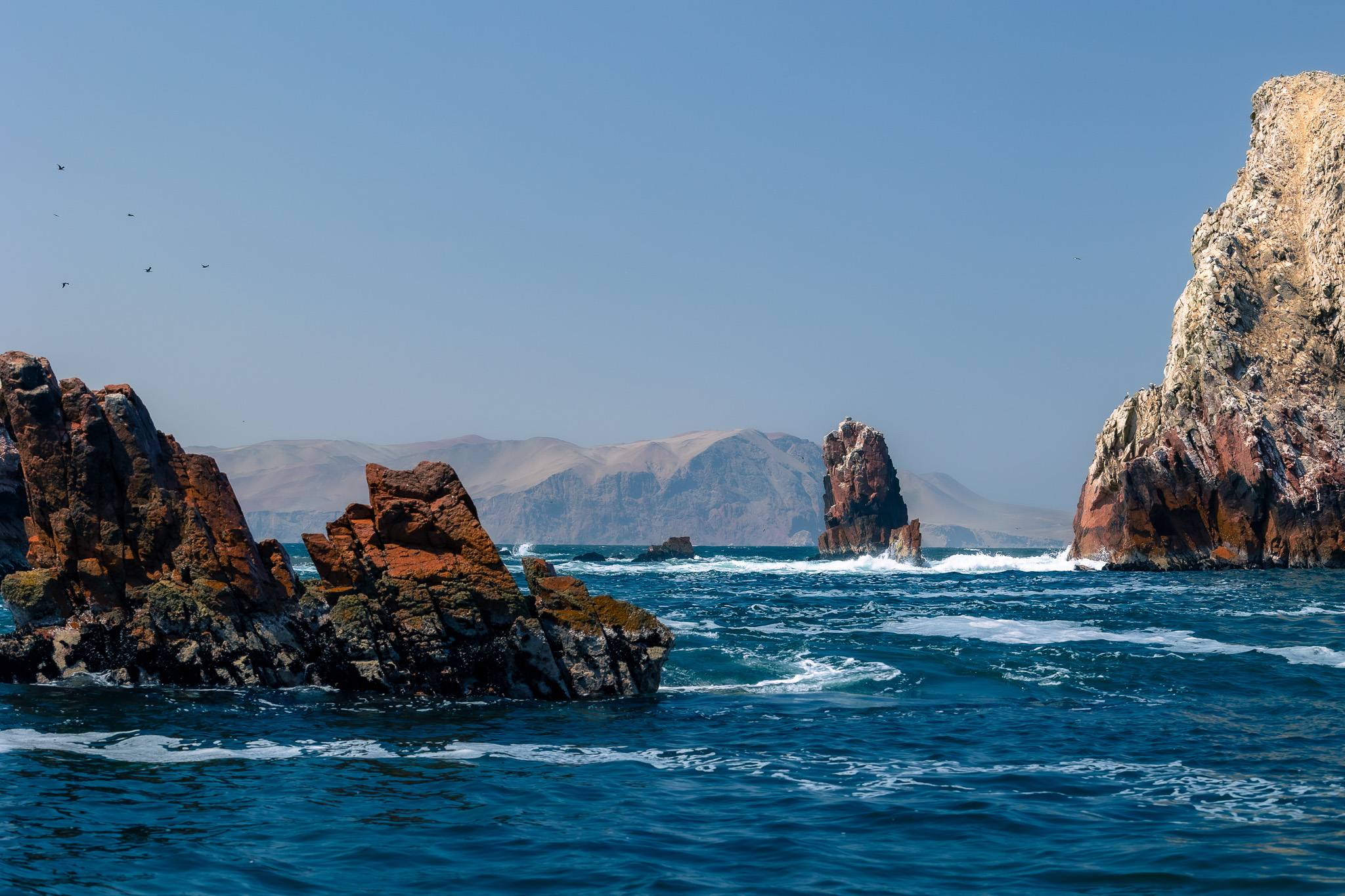 In Huacachina, we constantly had to fight off street vendors trying to sell every imaginable thing, from sun glasses to bandanas to fruit with non-stop "no gracias"s. The following day we booked a wonderful excursion to Paracas and the Ballestas Islands where we got to see Humbold Penguins, seals and my (Oli) personal favourite, the Peruvian booby. Again this trip was touristic but this time it was better organised. It would have been a hassle to organise it ourselves so we decided to go with a prepared tour. Both our highlight was the remoteness of the Paracas desert and I even enjoyed a dip in the pacific ocean to refresh.